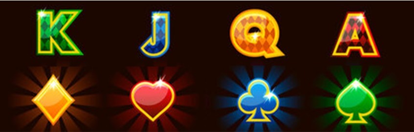 一般圖標建議使用最經典的 A、K、Q、J。這組字母源自撲克牌的大小順序,是全球玩家幾乎都有共識的符號語言。常見設計會搭配粗體字體,讓字母在縮小時仍具辨識性。不建議使用撲克牌花色(♠ ♥ ♦ ♣)作為一般圖標,因為花色在不同地區的文化裡,象徵與價值排序並不一致,容易造成混淆。