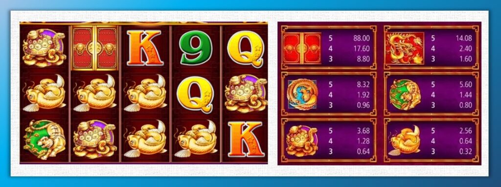 高分 Symbol 從 M1 到 M5 依序是:龍 → 鳳凰 → 老虎 → 玄龜 → 金魚。